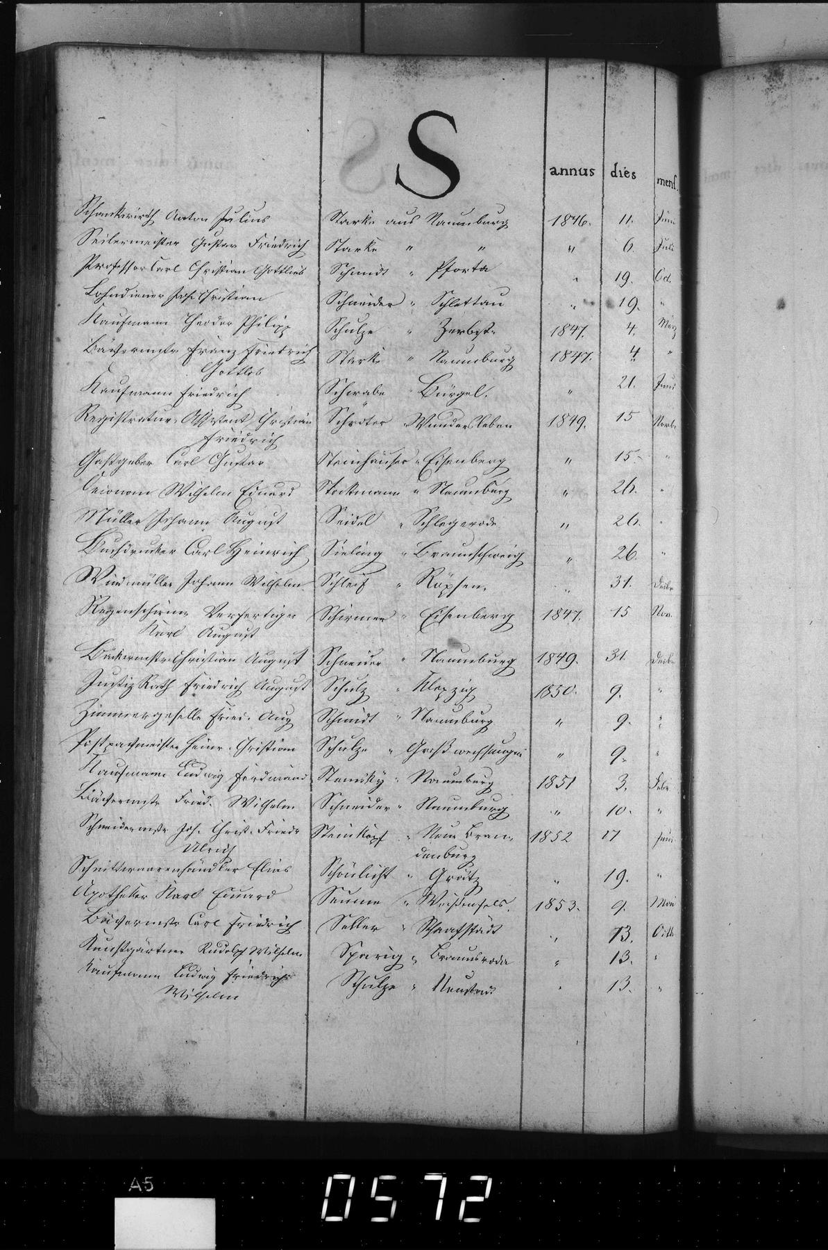 Herkunftsort Naumburg -- Bürgerbuch | 1849