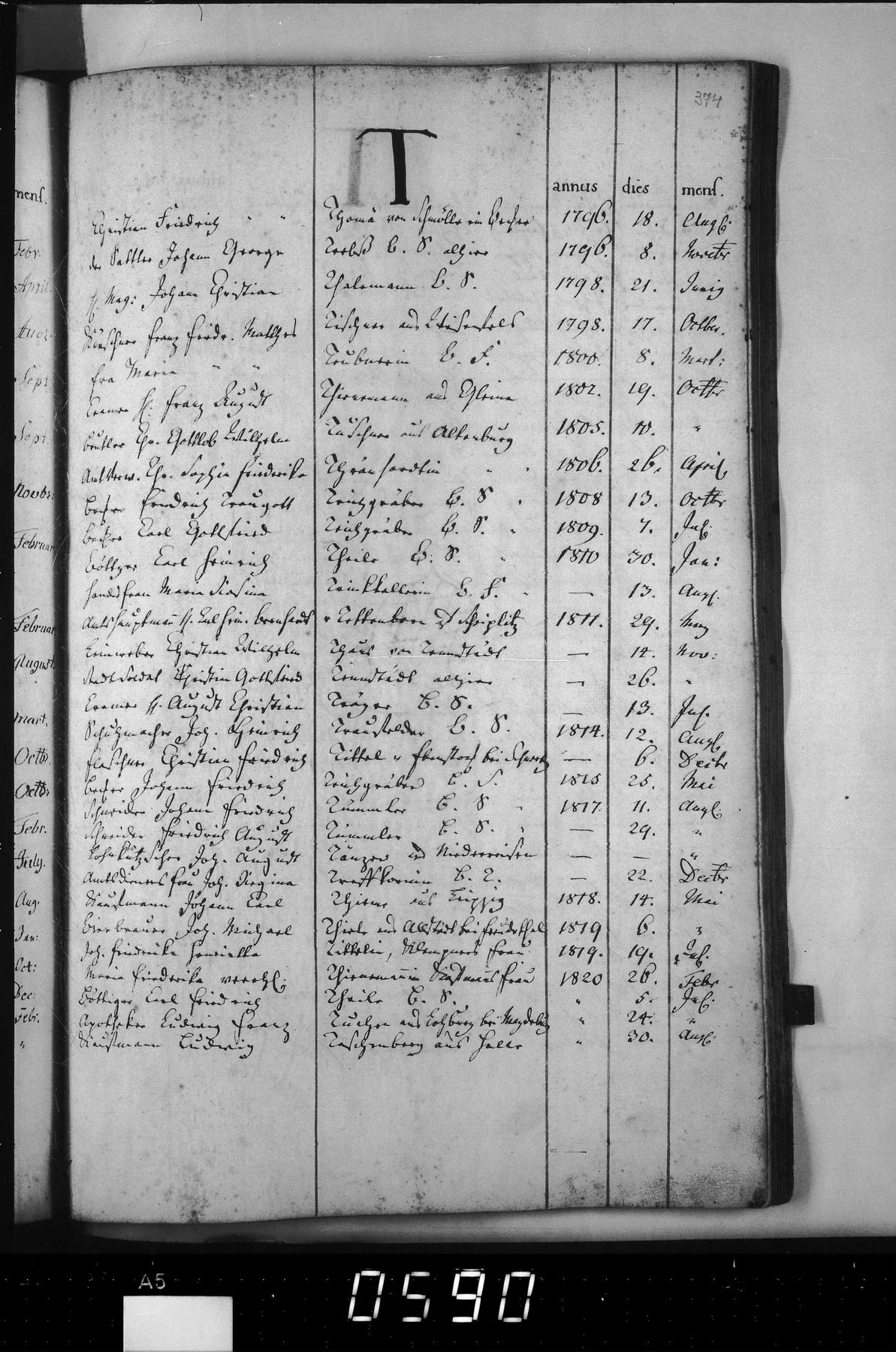 Herkunftsort Altenburg -- Bürgerbuch | 1805