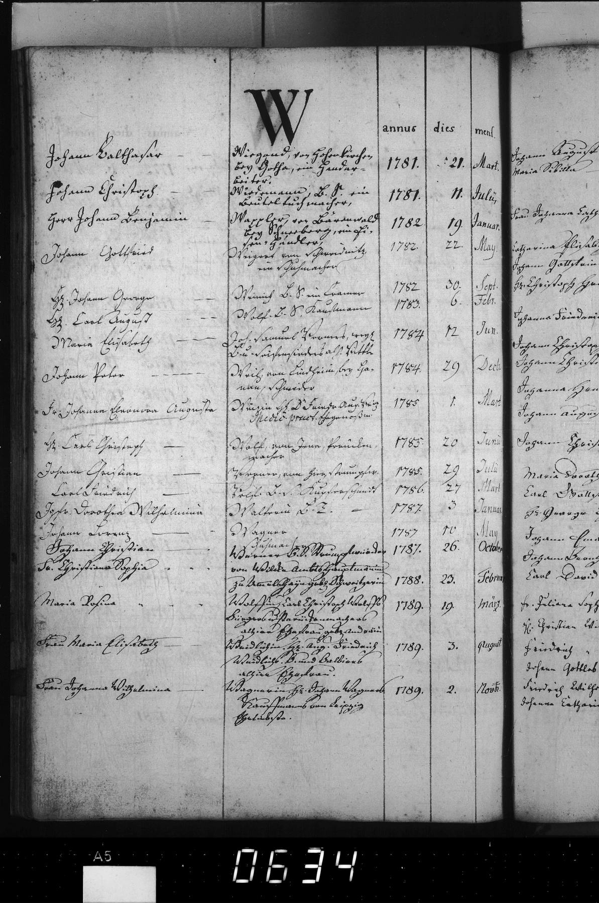 verheiratet mit: Wolf | Marie Rosine | Andre | heiratet Marie Rosine Andre -- KR | 1785
