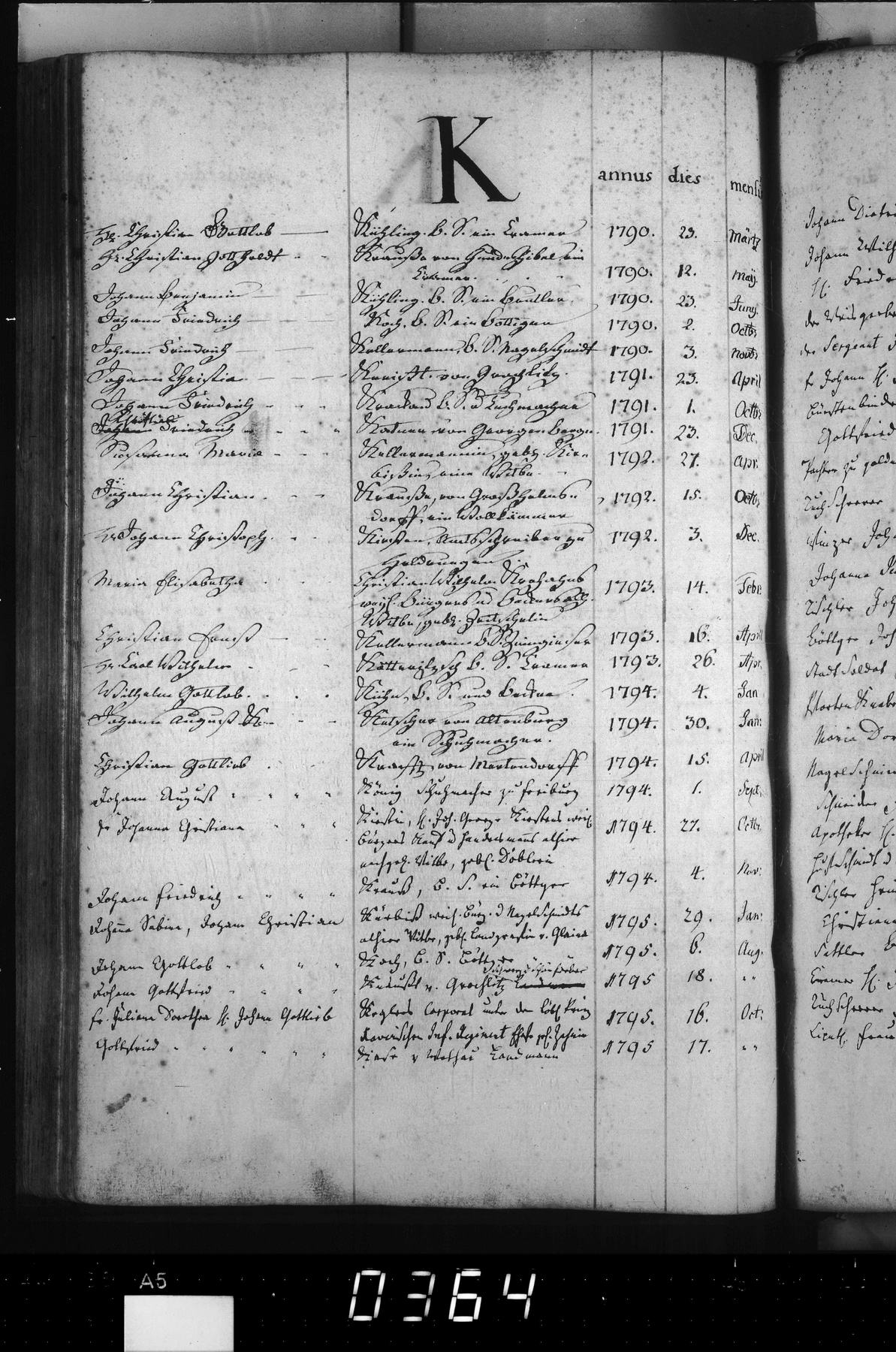 Bürgerl. Beruf Landmann -- Bürgerbuch | 1795